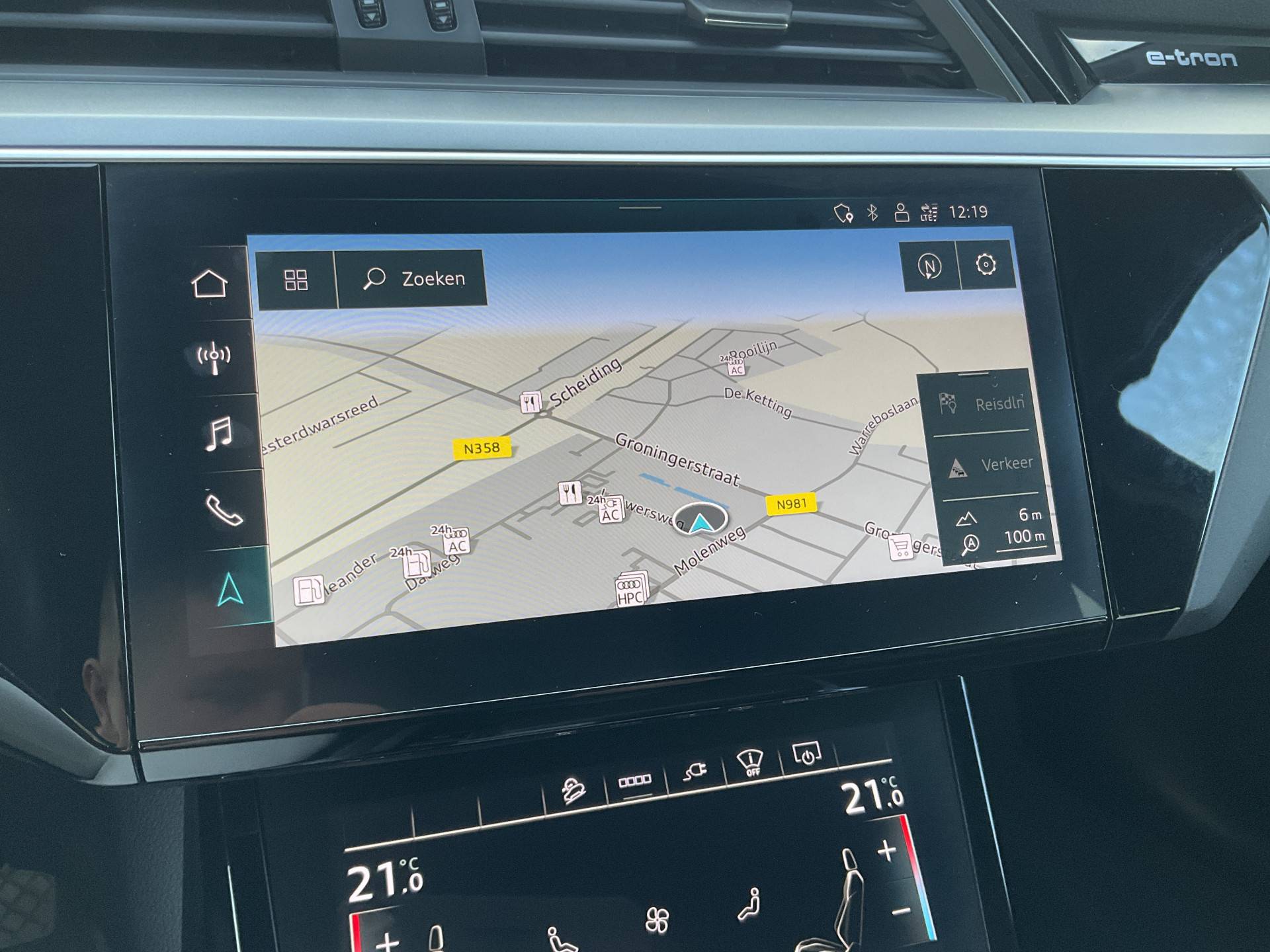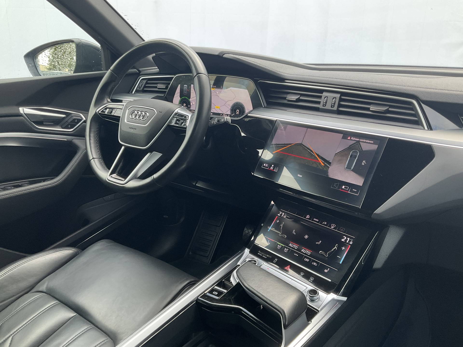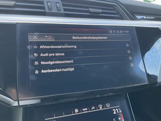 U geniet nog meer van het rijden met uw Audi omdat u wordt beschermd door intelligente veiligheidssystemen. Deze Audi e-tron is ook behulpzaam als het gaat om een rechte koers. Het Lane-keeping systeem signaleert en corrigeert als u onbedoeld de rijstrooklijnen dreigt te overschrijden. Veel aanrijdingen bestaan uit kop-staartbotsingen. De forward collision warning reduceert dat risico aanzienlijk. De veiligheid van deze auto wordt verder verhoogd door brake assist en bandenspanningcontrolesysteem.